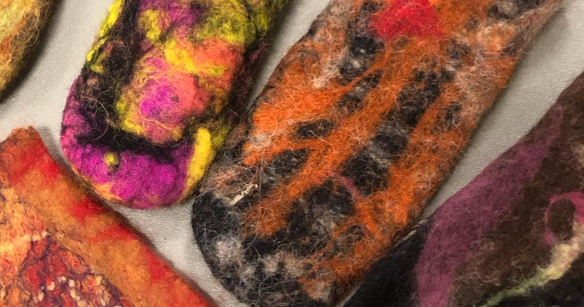 Artist Oksana will teach the technique of felting and help you create a case perfect for eyeglasses, readers or sunglasses. Wool is a magical fiber with tiny scales that stick together, which allows the user to create a pattern from it.The process of melding fibers together can be used to achieve a beautiful watercolor effect on fabric. In this workshop you will learn the nuno felting technique (wet felting) and take home a beautiful felted eyeglasses case.