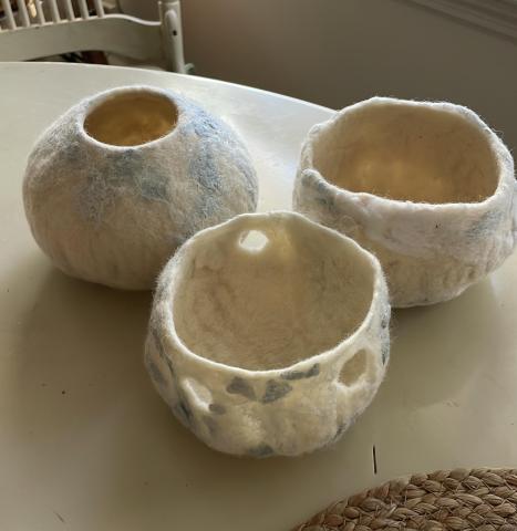 Nuno felting (wet felting) involves sculpting raw wool (wool roving) into 3D forms using soapy warm water and agitation. It's a fascinating and hands-on artistic process! Join instructor Oksana to craft a stunning vase or a vessel that can hold jewelry or serve another special purpose. There is a nonrefundable $10 materials fee.