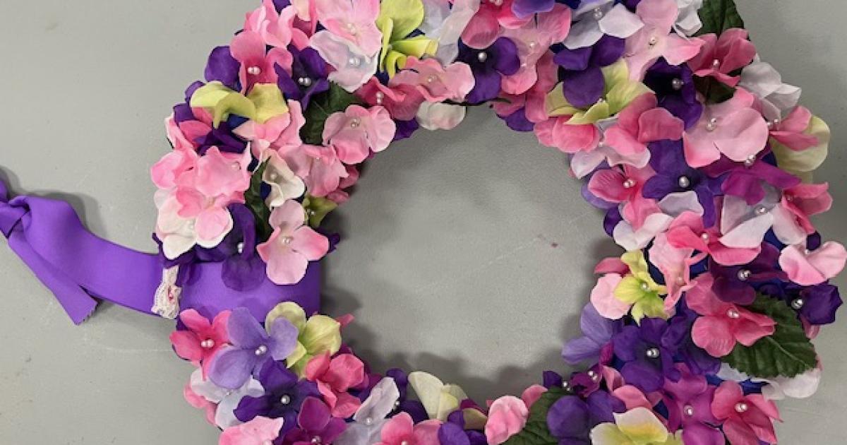 Make an exquisite 14-inch hydrangea wreath with artist Bonnie Schwartz, using silk hydrangea petals, pearls, rhinestones and lace. Your front door will be the talk of the neighborhood!