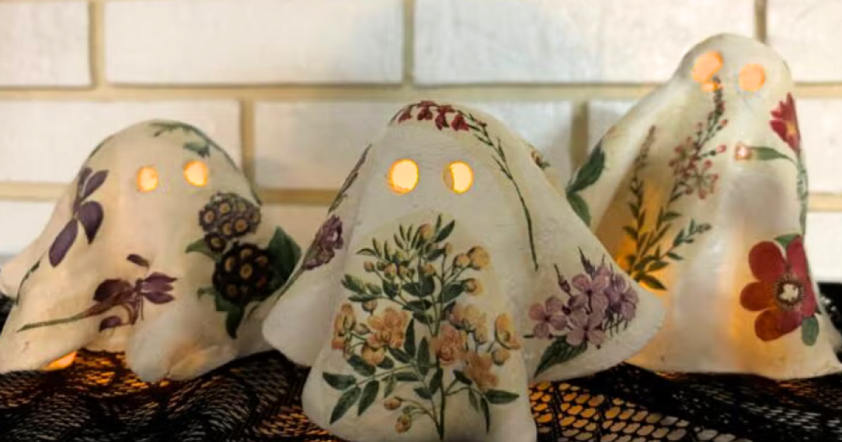 Create a cute and spooky ghost using air dry clay. Decorate your ghost with floral napkins using a decoupage technique and add a tea light for a cozy glow. Please note that you will need a smooth cylindrical object to roll out your clay (rolling pin, bottle, glass cup, etc.). Register and pick up a kit, then watch the instructional video below.