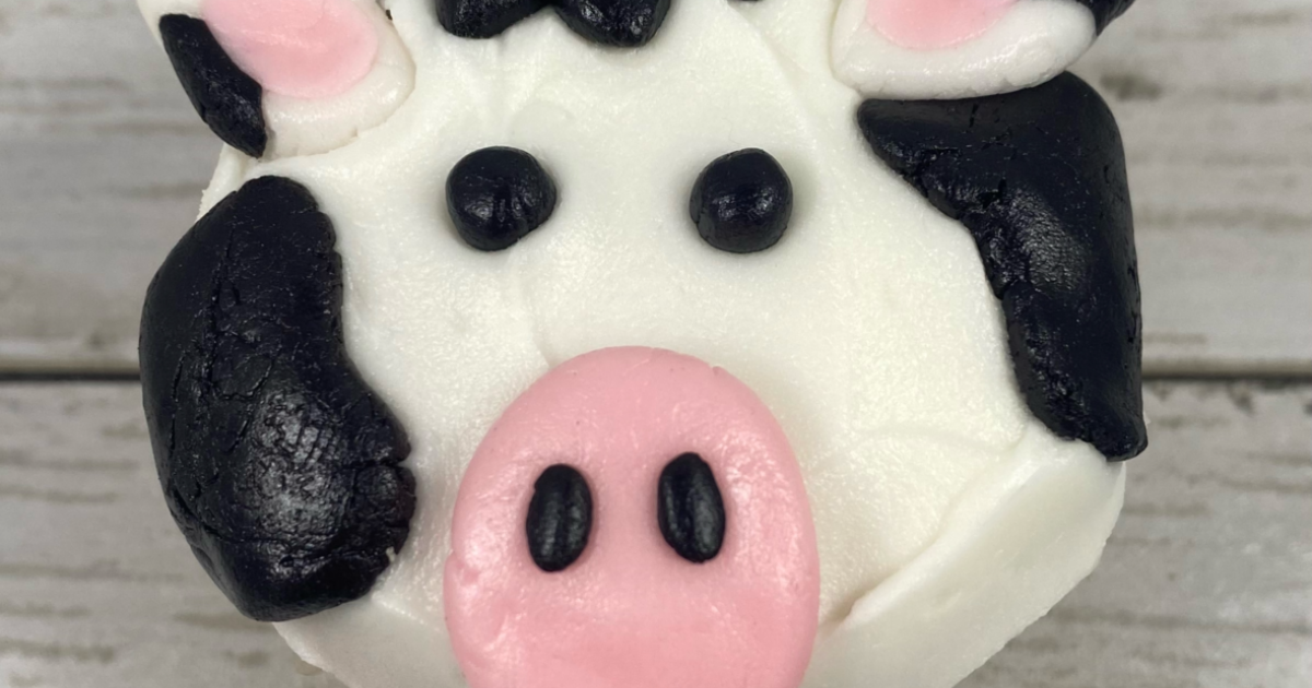 Make three adorable cow cookies using fondant and buttercream.