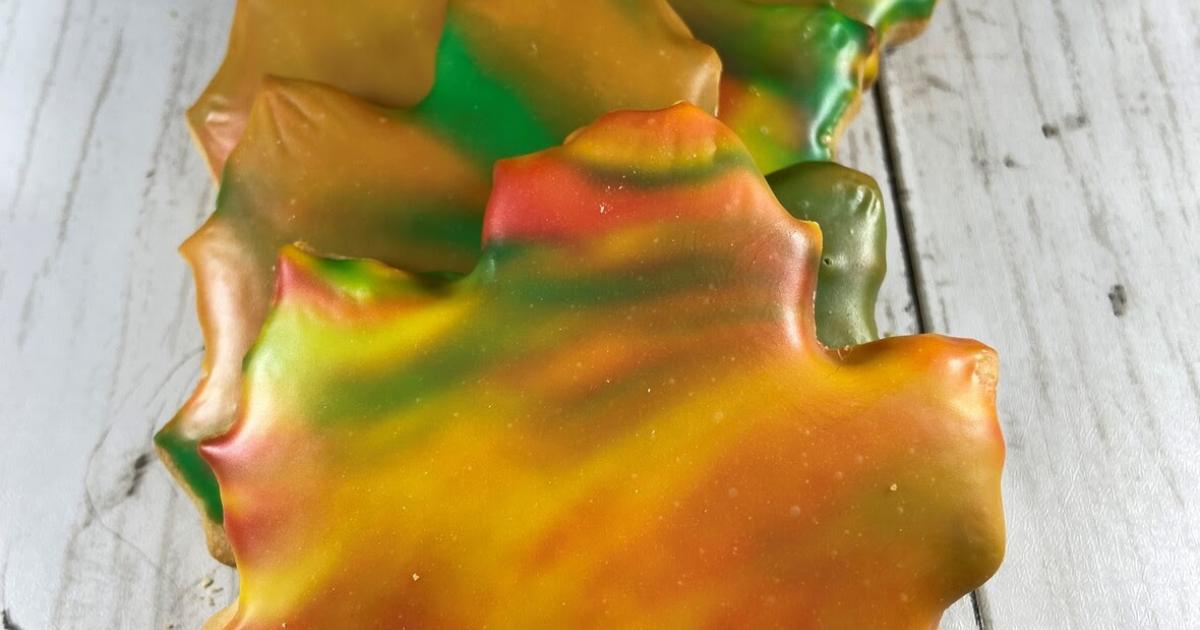 Decorate four leaf-shaped cookies with sugar glaze.