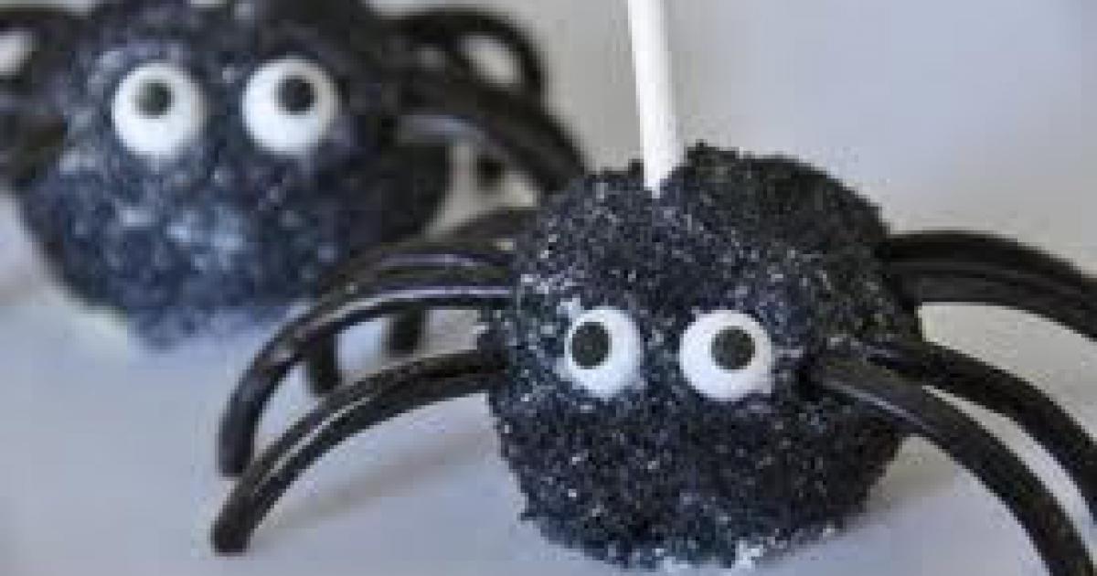 Dip the cake pops into chocolate then decorate them with candy to create the spiders. Take home two in a decorated bakery box!