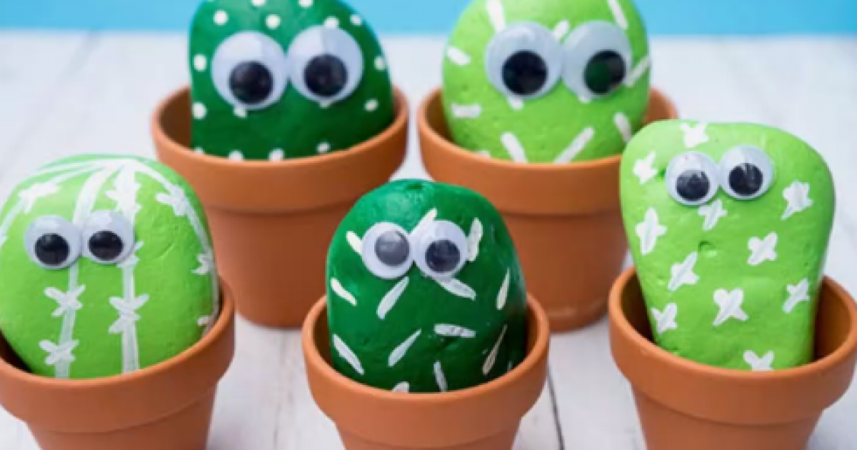 Cactus friends rock! Paint and decorate a rock and create an adorable cactus friend to keep, give away, or hide for someone to find.