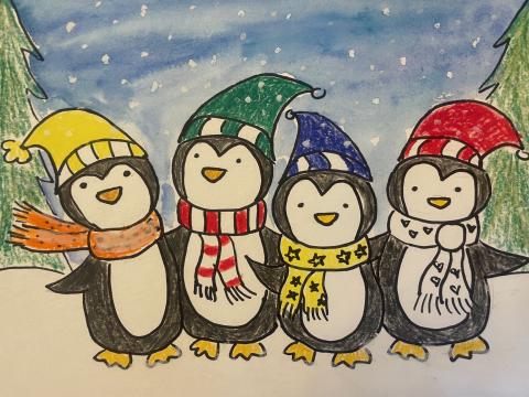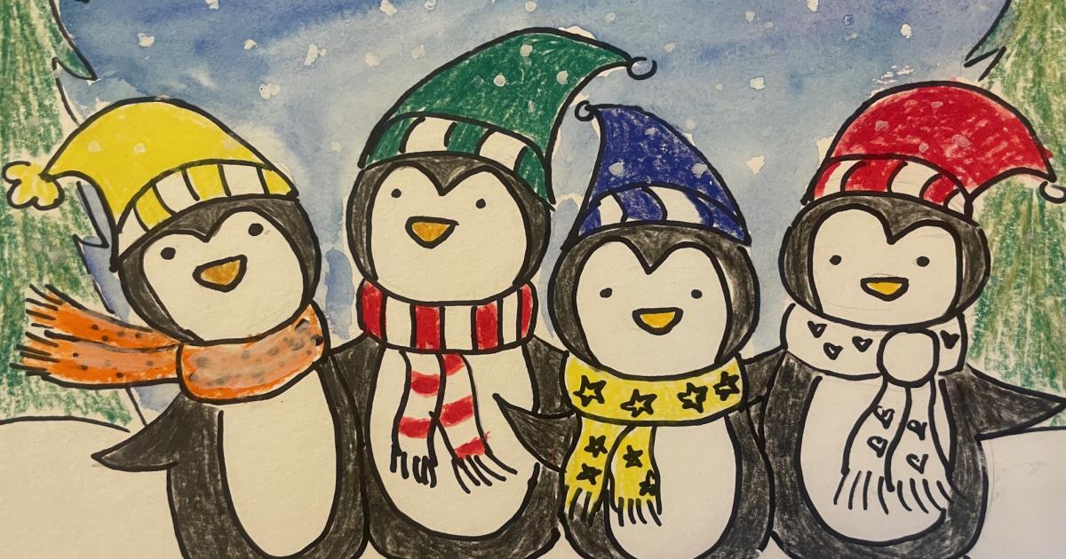 Art Teacher Amy will take you step-by-step through a drawing of penguins wearing hats and scarves using oil pastels and watercolors. No experience necessary! Register beginning February 20.