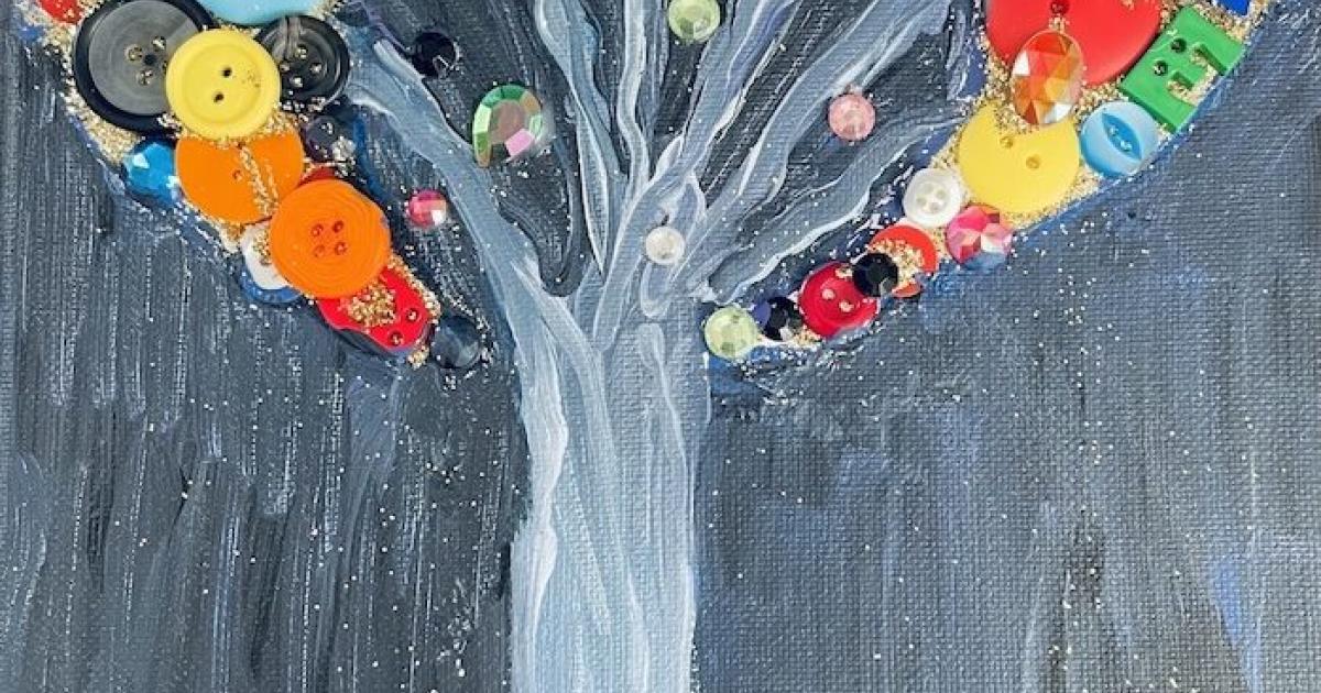 Create a beautiful textured tree on canvas using beads, buttons, gems, and paint. Register and pick up a supply kit beginning December 21.