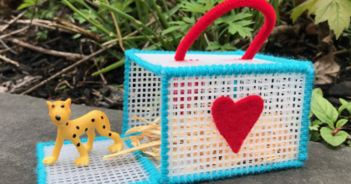 Construct a mini travel crate from plastic canvas, perfect for transporting your new, surprise mini friend!