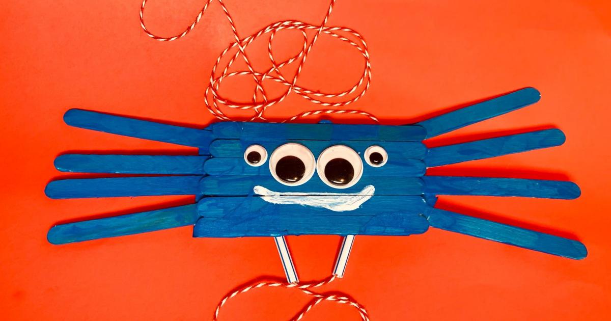 Grab some popsicle sticks, masking tape, and yarn to create a spider that can climb up any water spout.