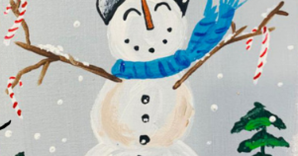 Paint this snowman in acrylic paint on an 8X10 canvas. All supplies are provided: paint, brushes, canvas surface, and reference image. Follow the image or use your imagination. Registration and pickup begins February 21.