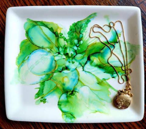 Join Designer Elizabeth to learn about captivating alcohol inks. You'll create a one of a kind, vibrant piece of art on a special trinket dish. Inks can stain, so please dress for a mess. Registration begins December 9.