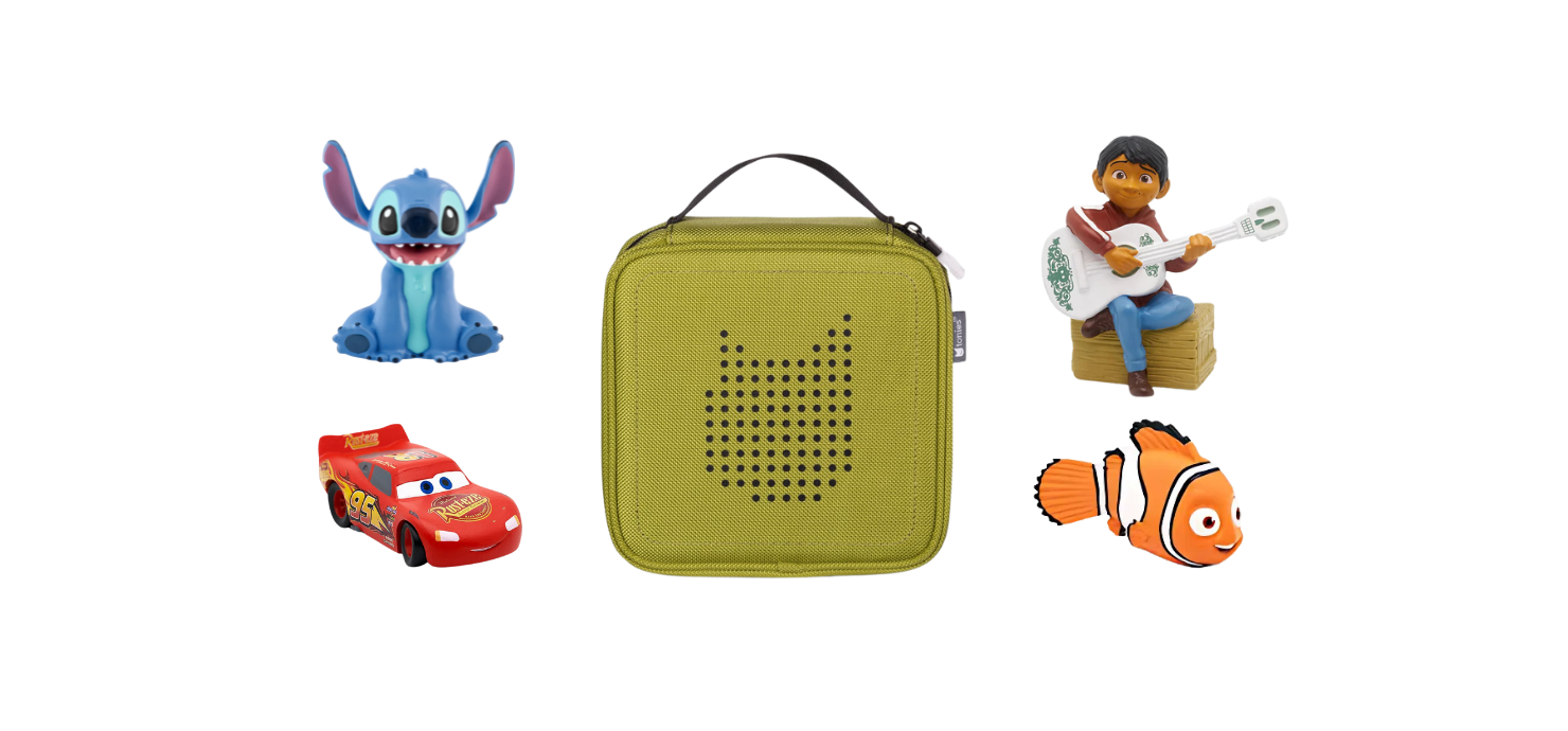 Tonies characters included in this set: Disney Stitch, Disney Lightning McQueen, Disney Coco Miguel, Disney Nemo.